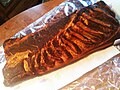 Travers de porc, sauce au miel épicé, tagliatelles, salade